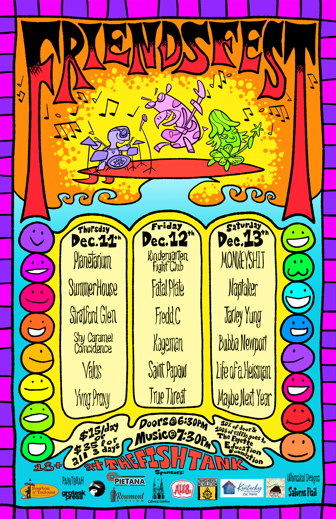 Poster for a three day festival featuring a variety of artists and vendors.
